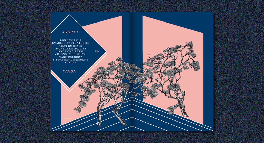 Longevity is a goal aimed at by every entity with a life of its own: in nature and politics, by business and by us as human beings. Nevertheless, we often take short-term action. In a world that is rapidly changing the capacity to react, flee or adapt a product range at speed is essential. In parallel, long-term strategies for the day after tomorrow have to be developed and things worth preserving have to be protected. The range of longevity strategies is widely varied – and paradoxical. Parting with obsolete old ways and renewing ourselves – phoenixlike – or adhering to the status quo and weathering minor or major turbulence can be equally useful. But how do we know when to preserve, when to let go? Where do we have to create robust structures to safeguard longevity? Where is short-term thinking or a short life needed?