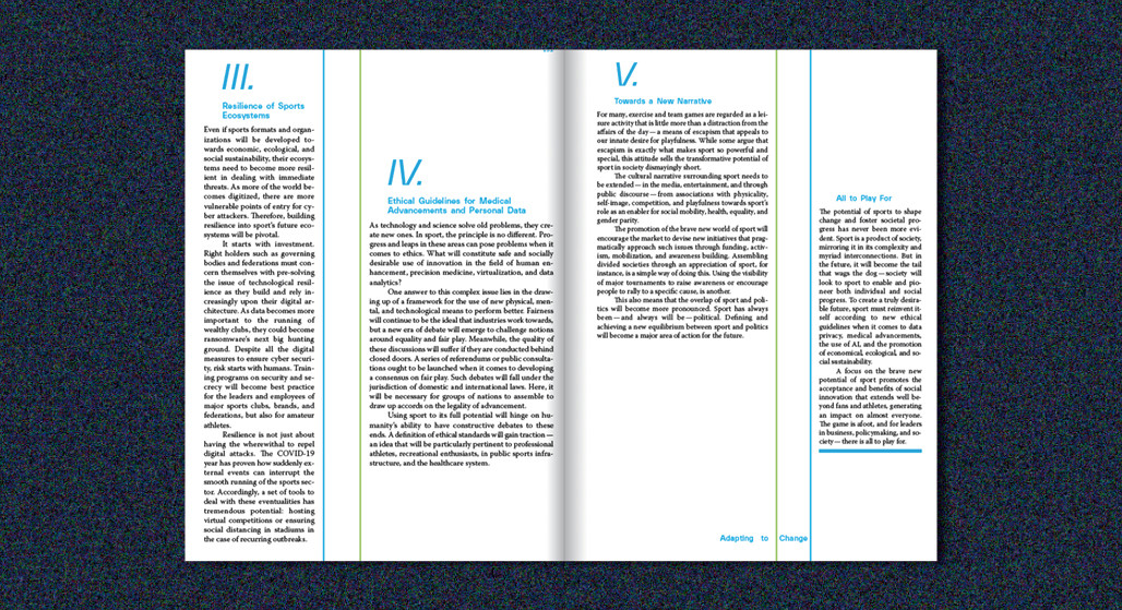 Sport has always prepared people for their life challenges through playful competition. Today, the sports landscape is embedded in a contect of unprecedented change: rising health care costs, technological disruptions, and climate change pose existential risks for society, economy, and environment. Can sport empower humanity to tackle some of the biggest issues of our time?