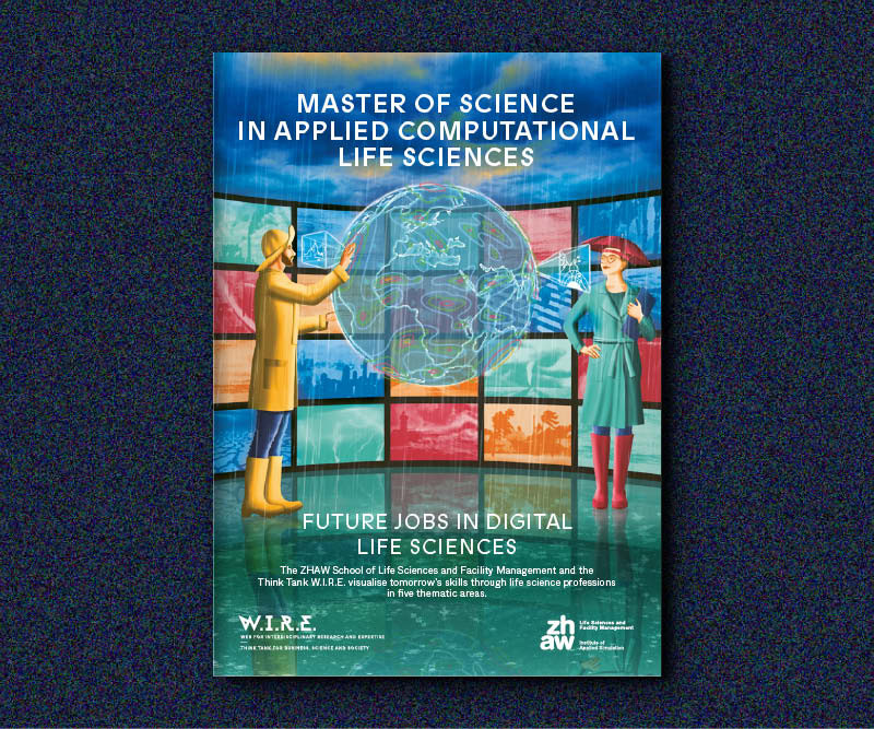 The ZHAW School of Life Sciences and Facility Management and the Think Tank W.I.R.E. visualise togehter with artist Marco Cresta tomorrow’s skills through life science professions in five thematic areas.